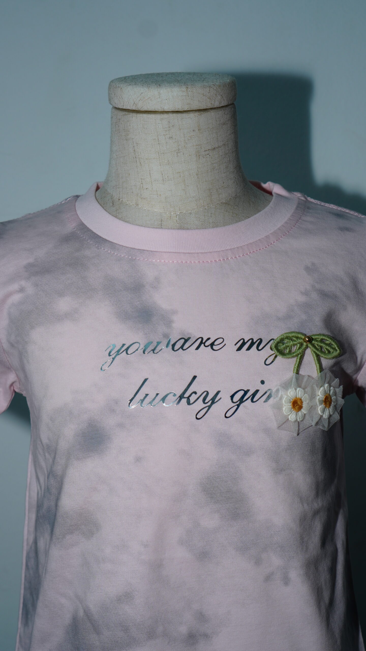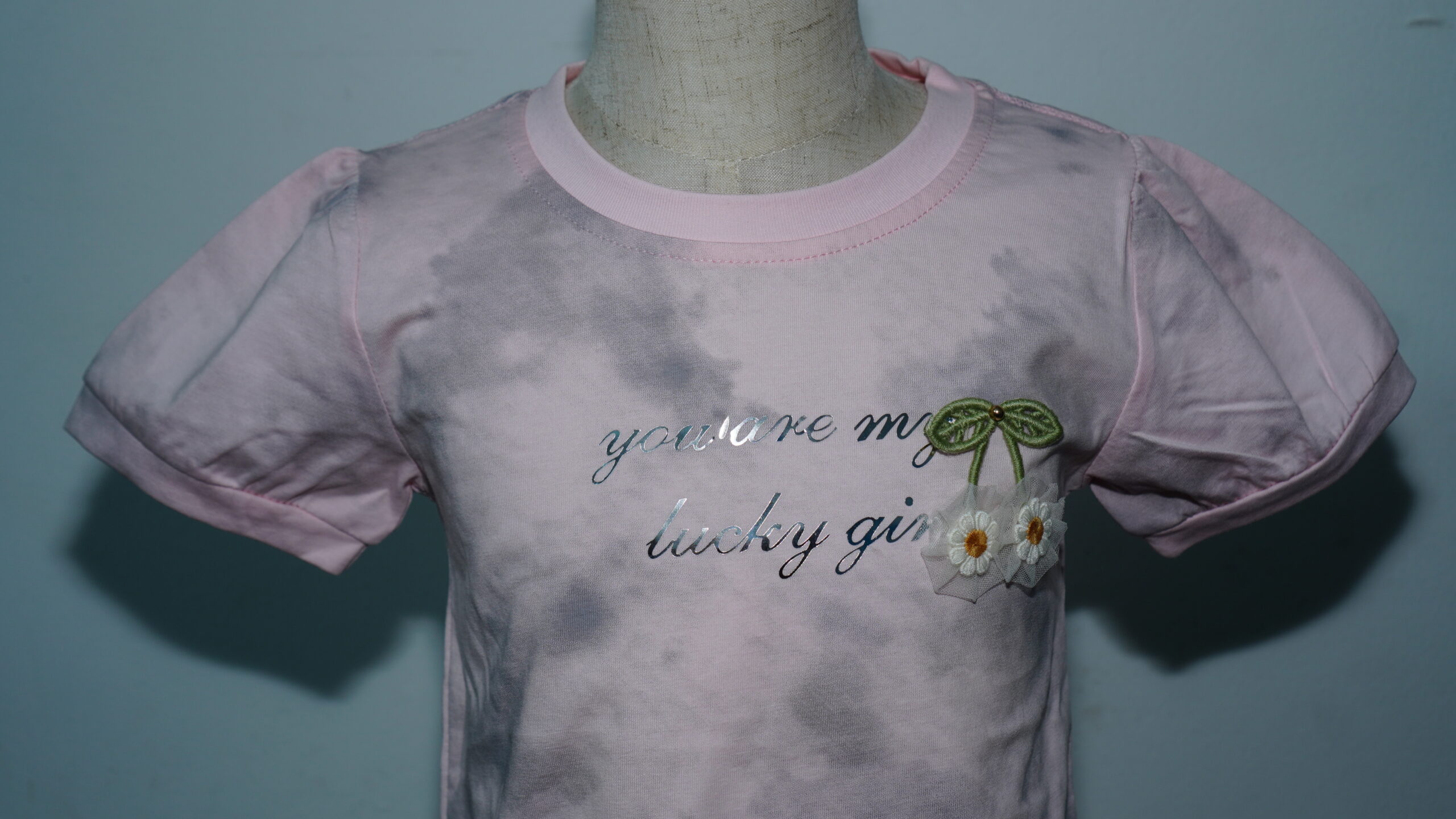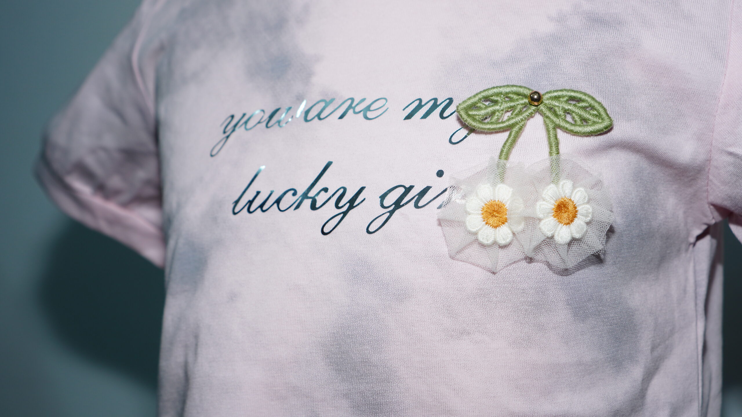 • Inspirational Graphic: The chest features the high-shine silver message “you are my lucky girl,” adding a sparkling, sentimental touch to the overall design.